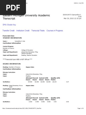 Eastern Michigan University Academic Transcript Pdf Academia Educational Stages