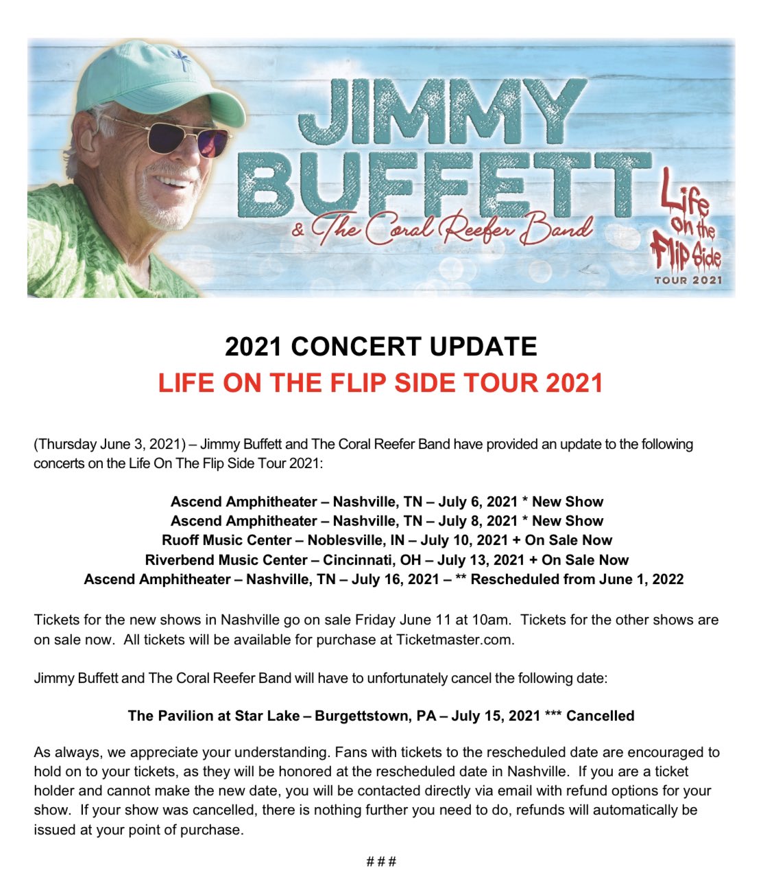 Jimmy Buffett On Twitter Hi Ho Hi Ho Breaking News Lifeontheflipsidetour For More Information Please Visit Https T Co Bkcyx9g8dw New Nashville Shows Go On Sale Friday June 11th Indy And Cincinnati On Sale Now